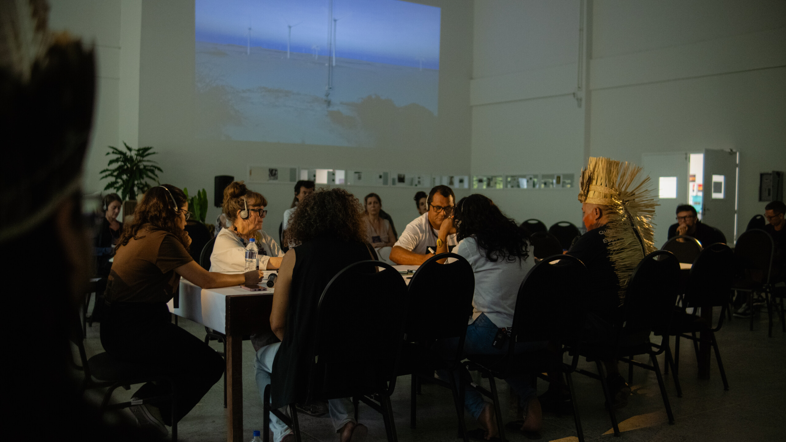 Lois opened the table to Valneide Sousa, a leader from the Sabiaguaba Settlement engaged in the struggle for land rights, and Ayô Herú de Sousa Holanda, a Black non-binary trans person, educator and cultural activist who coordinates the Êpa Pretu collective. Quilombola communities were represented by João do Cumbe, a human rights defender and educator who speaks out against the impacts of wind energy, and Cleomar Ribeiro da Rocha (Clea do Cumbe), a fisherwoman, environmental activist and president of the Cumbe Quilombola Association. The Anacé people were represented as a family: leader Aurea Anacé, an Indigenous producer and coordinator of the Brotar Cinema school; Mariano Anacé, a student and filmmaker; and the General Chief Roberto Ytaysaba Anacé, a teacher and defender of human and environmental rights, whose territory has been impacted by the construction of data centres.